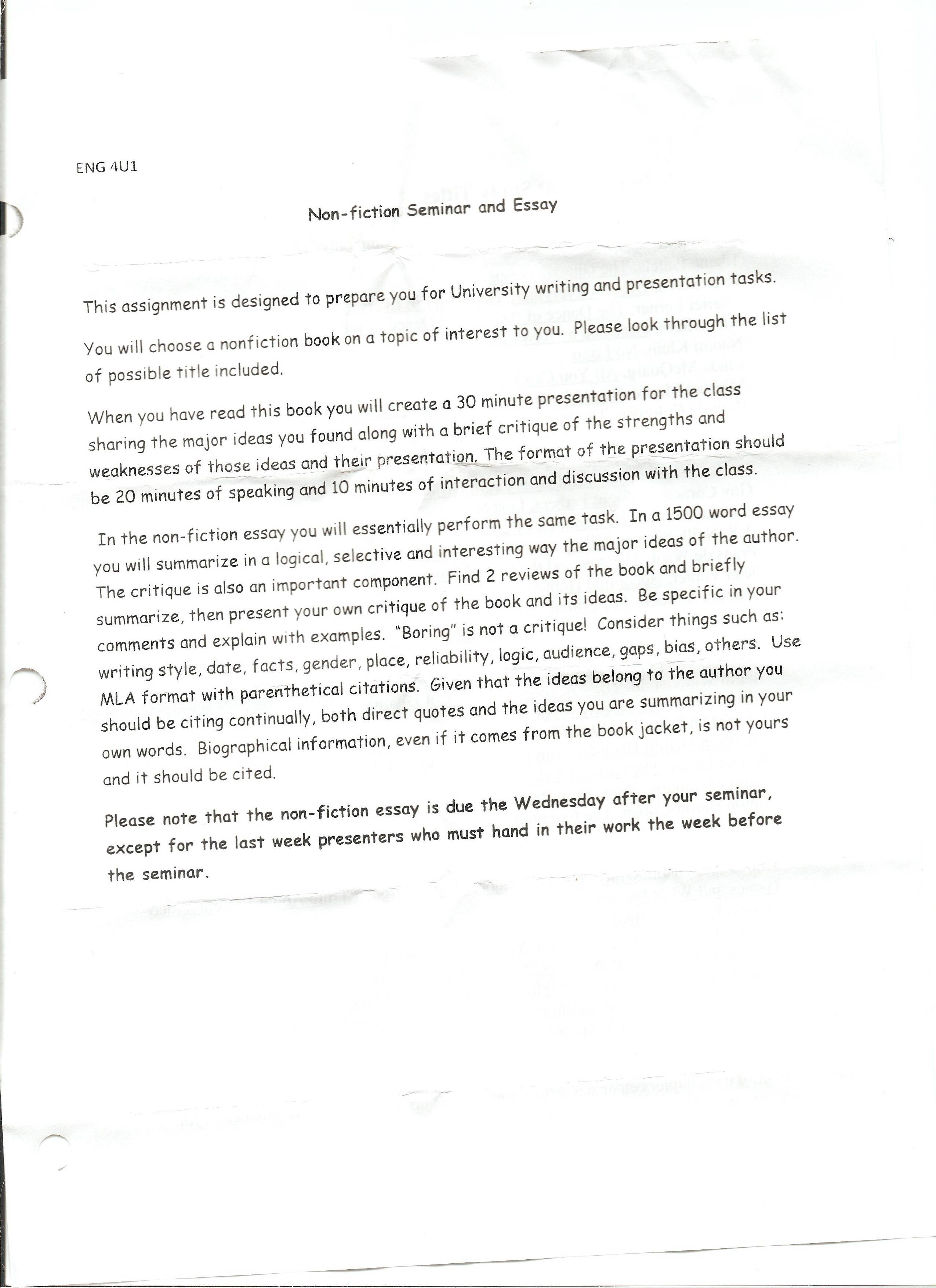 You're asking about a "non-fiction novel" which is pretty much a contradiction in terms. I note the assignment is a "non-fiction book" which is more precise.